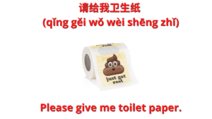 a.Chinese, How to ask where the bathroom is, Please give me toilet paper.